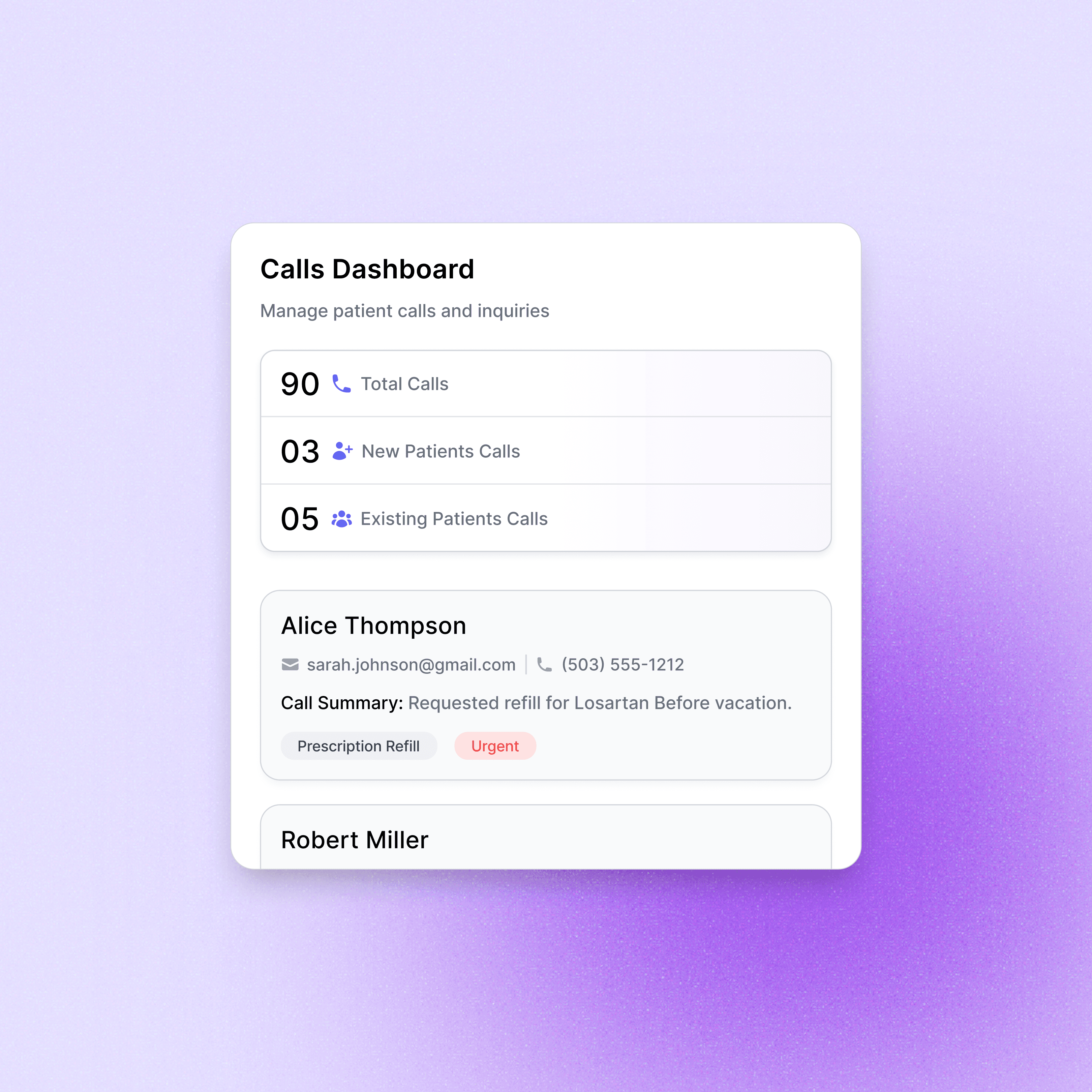 Our AI receptionist gives patients immediate, professional attention every time they call. It handles appointment scheduling, answers their questions about your practice and services, gathers necessary information, and connects them with your team when needed. Thoughtfully customized to represent your practice authentically while operating 24/7.