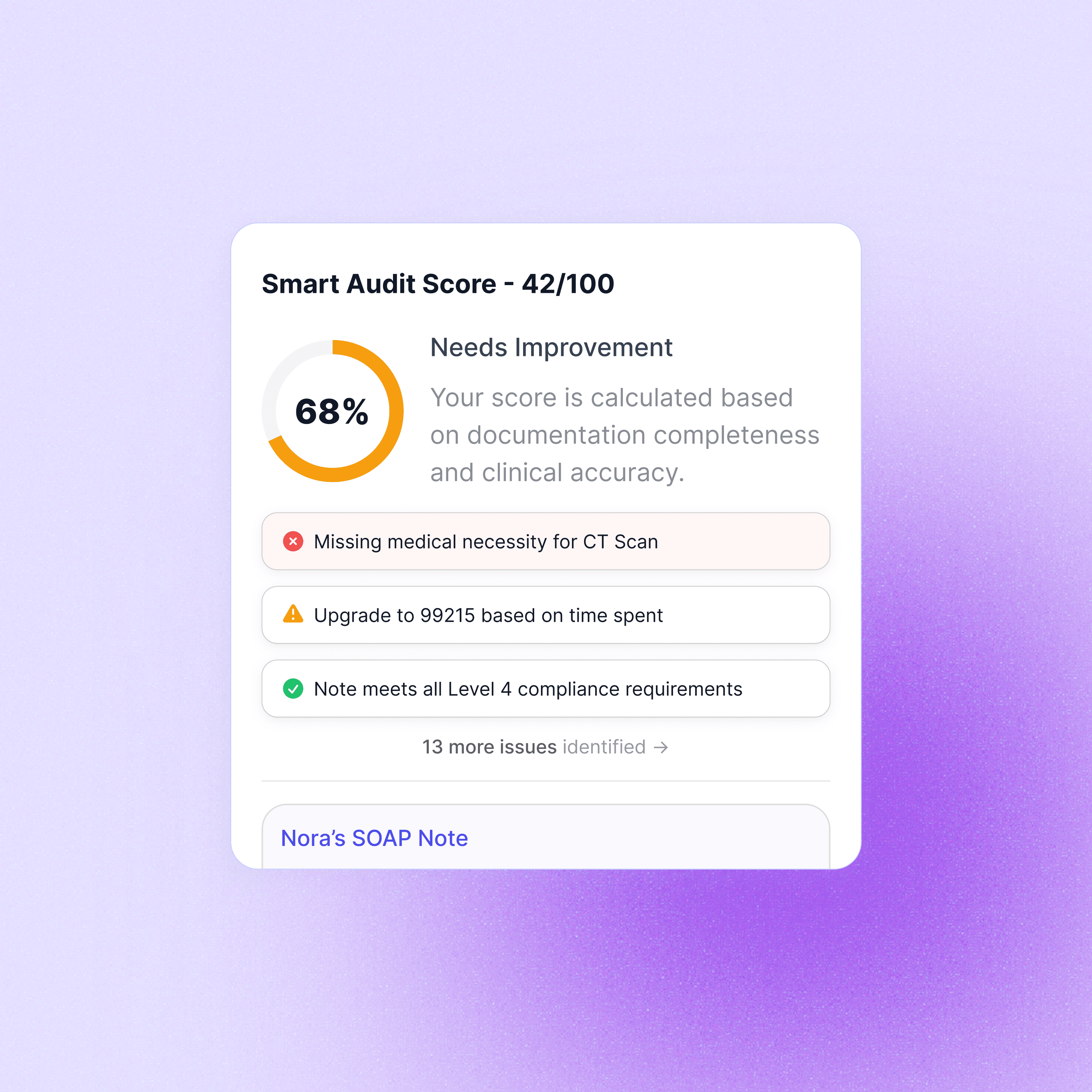 Eliminate revenue leakage and shield your practice from audit risks by transforming existing documentation into a financial guardrail that instantly identifies missed billing opportunities and compliance gaps.