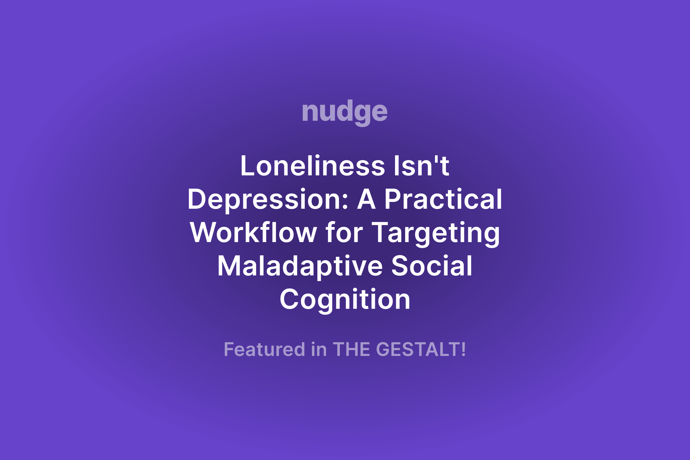Loneliness Isn't Depression: A Practical Workflow for Targeting Maladaptive Social Cognition