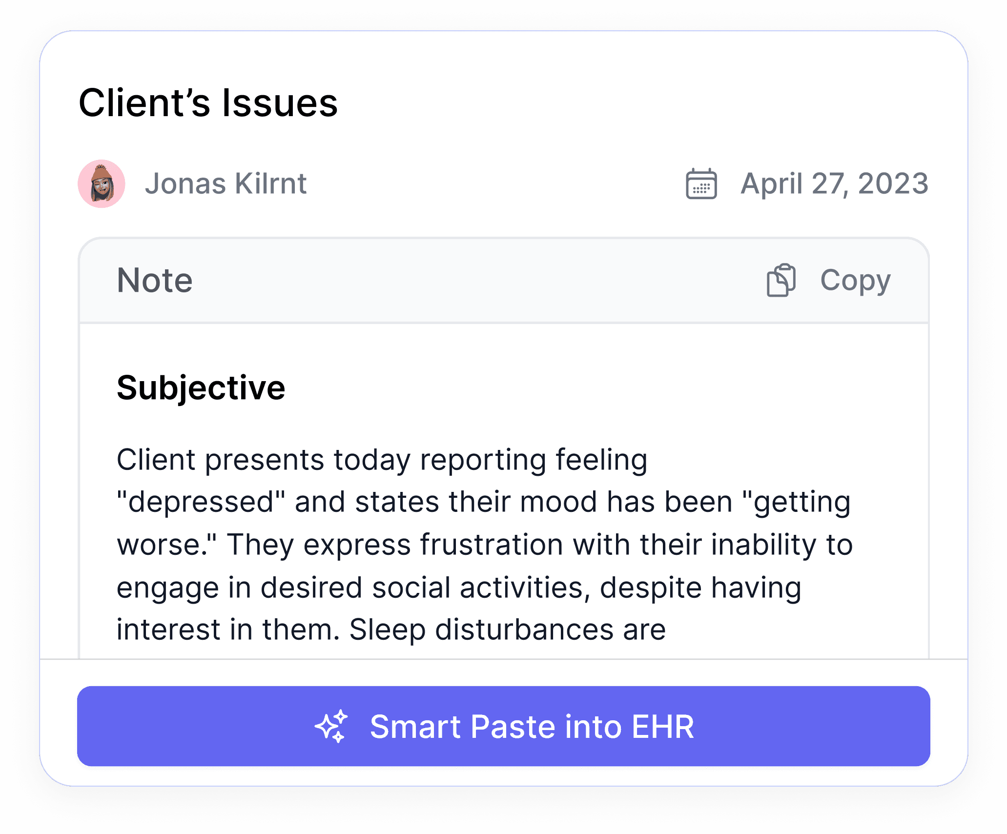 "Nudge totally redefined how we do our clinical docs. The session insights dig deep, super crucial for effective treatment plans. Everything integrates so smoothly right from the intake notes, boosting our therapy strategies."